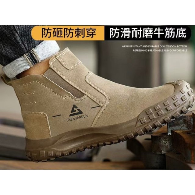高級翻毛皮防滑防撞防刺穿絕緣鋼頭鋼底安全鞋