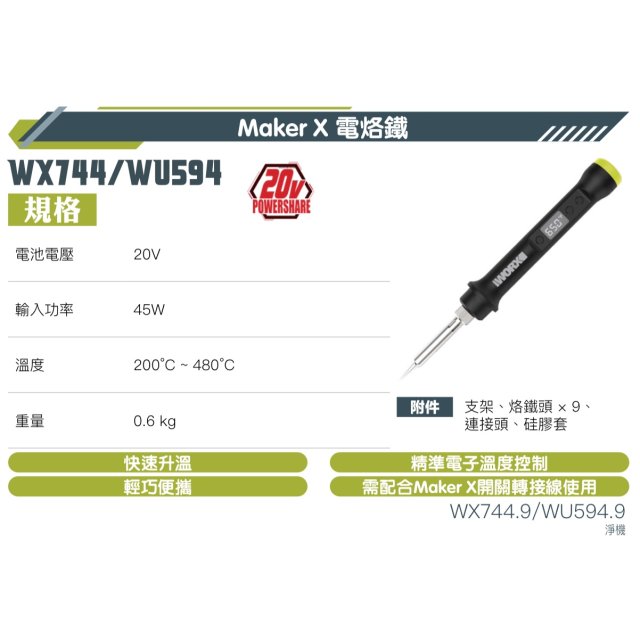 WORX威克士 20V MAKER X 電烙鐵(WX744.9)(淨機)