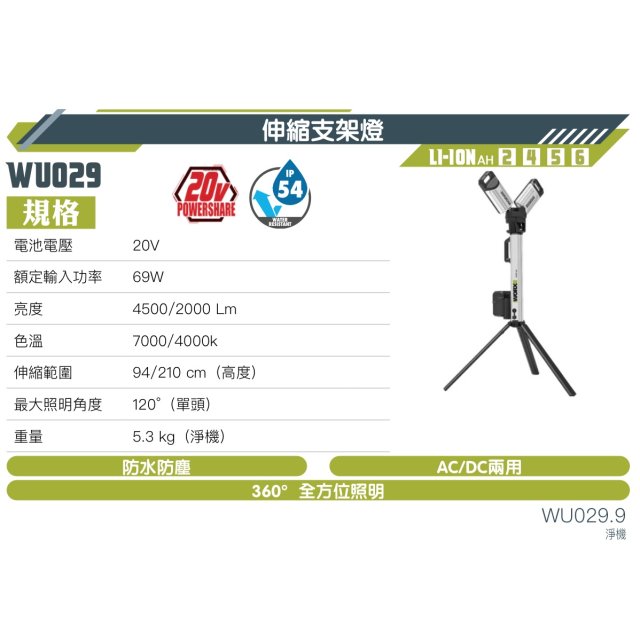 WORX威克士 20V工作照明燈(WU029.9)(淨機)