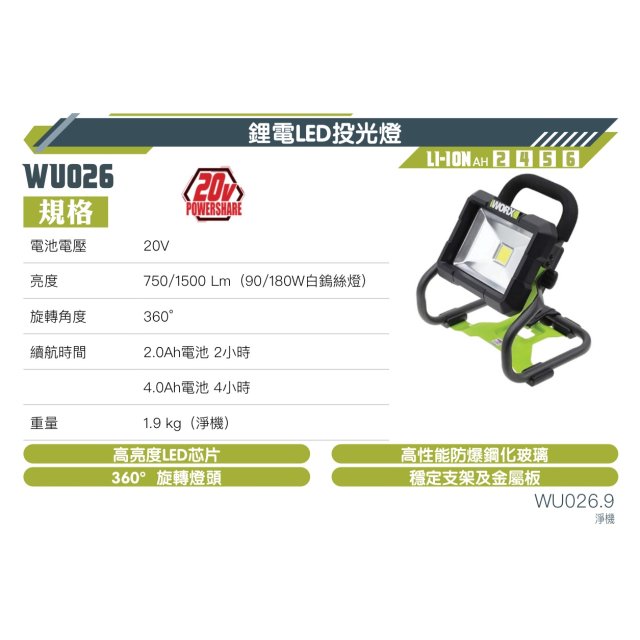 WORX威克士 20VLEC照明燈(WU026)(淨機)