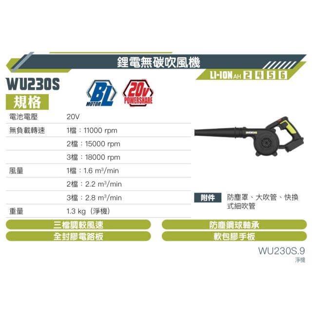 WORX威克士 20V無刷吹風機(WU230S.9)(淨機)