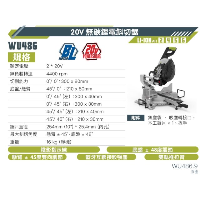 WORX 20V 無碳鋰電斜切鋸 (WU486.9)(淨機)