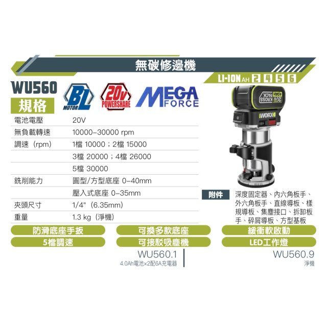 WORX 20V無刷修邊機(WU560.9)(淨機)