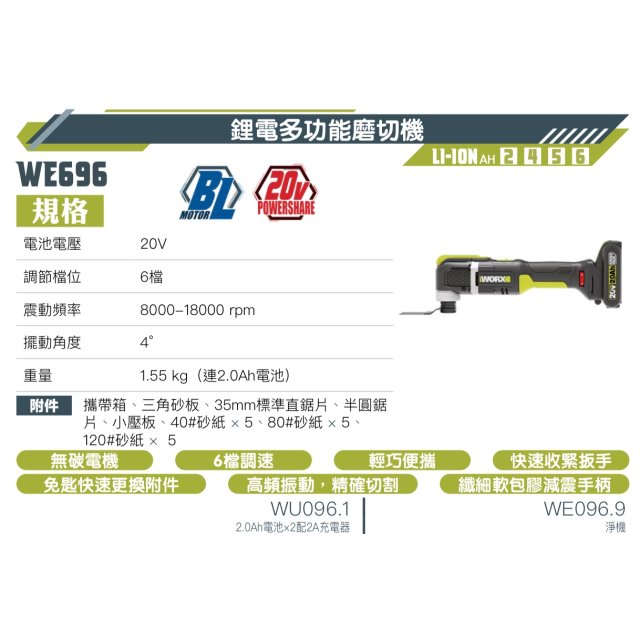 WORX 20V無刷多功能磨切機(WU690)(淨機)