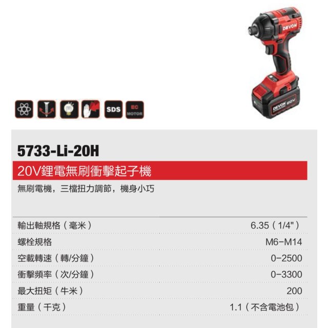 DEVON大有 20V起子機(5733QLi-H-Z)(淨機)