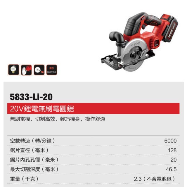 DEVON大有 20V5·5寸圓鋸(木工專用)(5835Li-140-Z)(淨機)