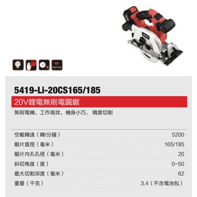 DEVON大有 20V6·5圓鋸(5419Li-165-Z)(淨機)